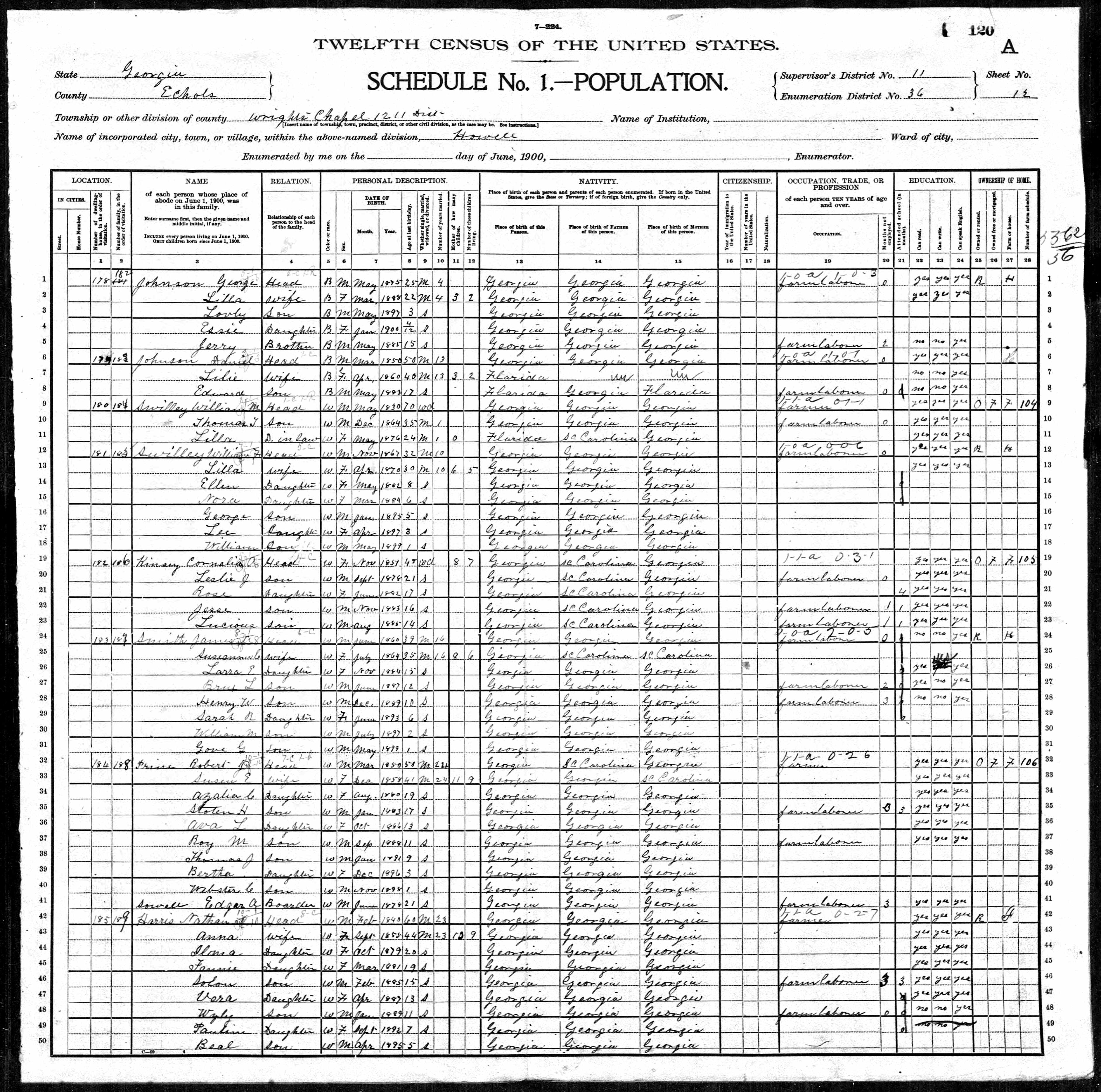 1900 Census - Echols County, Georgia - Nathan Harris